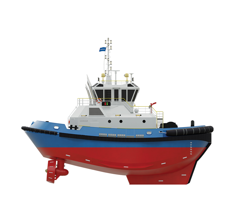Offers combined best performance characteristics of Z-Tractor and ASD tugs. Emphasizes safe and capable ship-handling with large ships. Maximum efficiency for both ship-handling and towing operations.